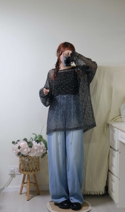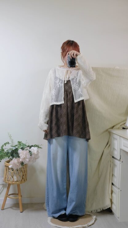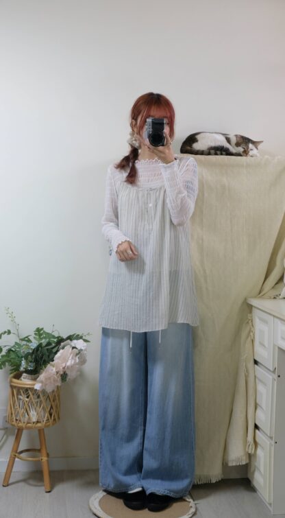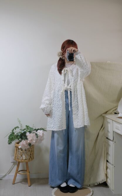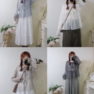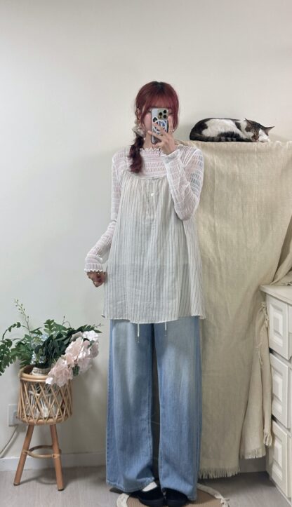 【限時優惠】 氣質!透薄荷葉綁結blouse