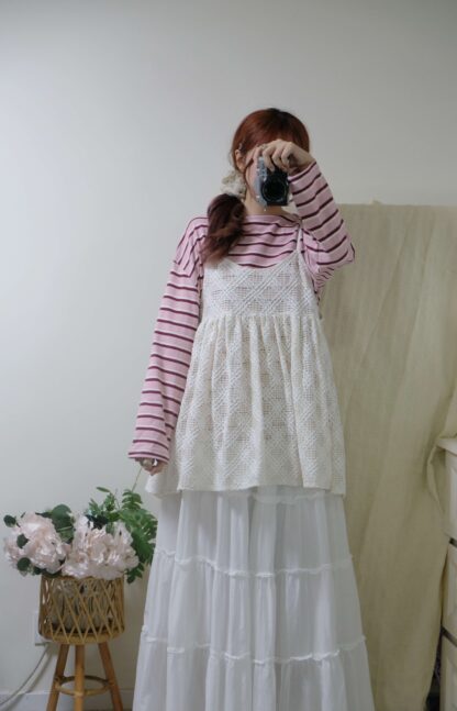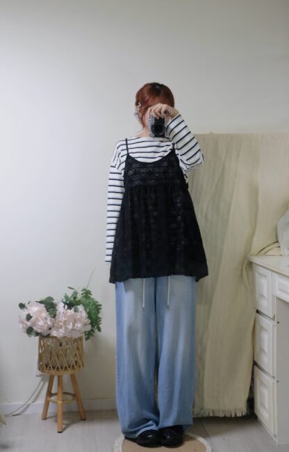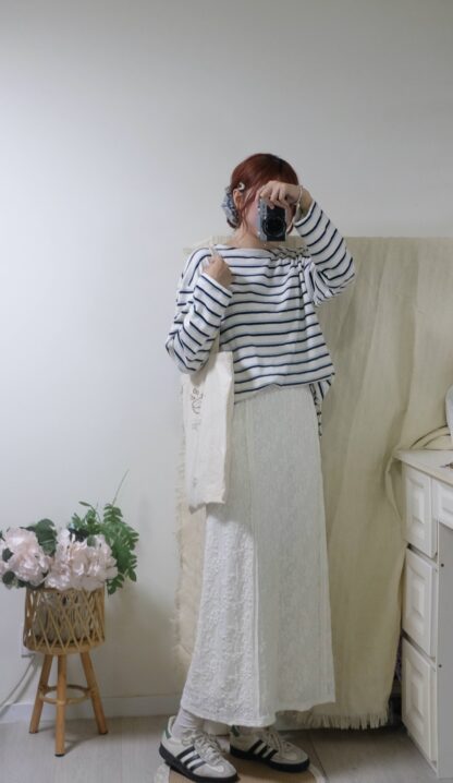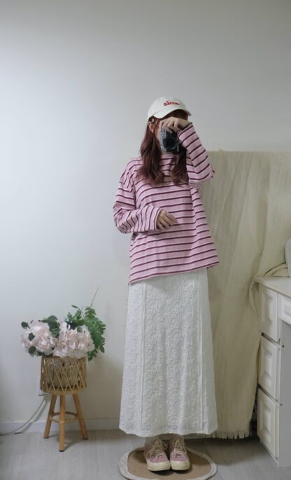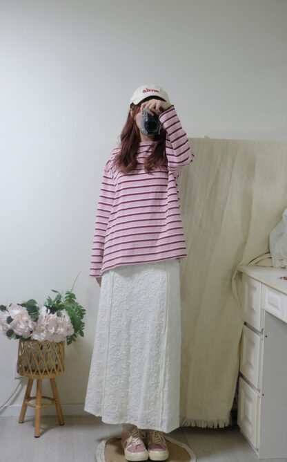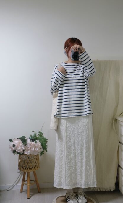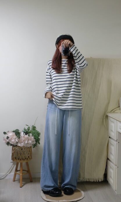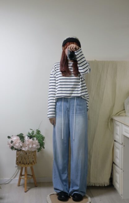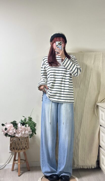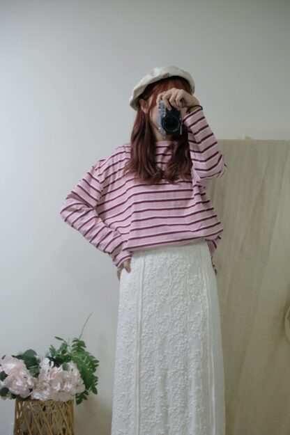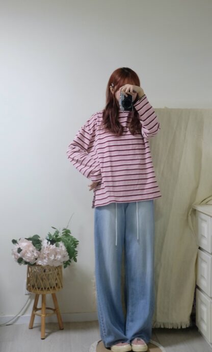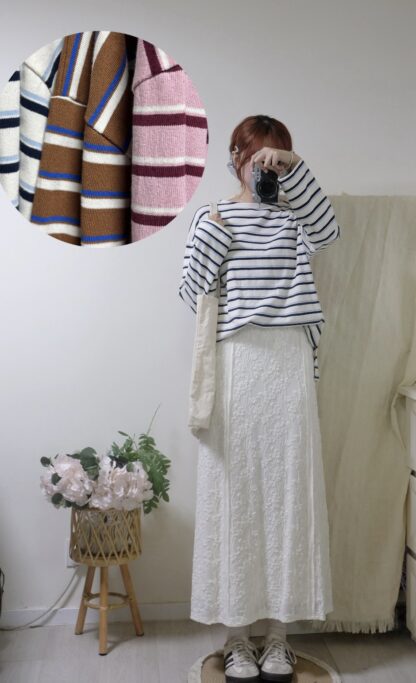 搶先評價 “簡約拼色間條top”