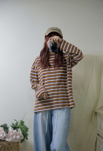 簡約拼色間條top
